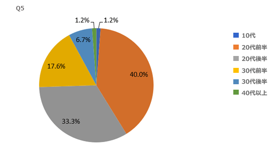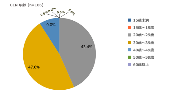 | n | 10代 | 20代前半 | 20代後半 | 30代前半 | 30代後半 | 40代以上 | |