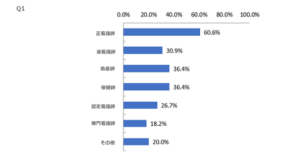 | n | 正看護師 | 准看護師 | 助産師 | 保健師 | 認定看護師 | 専門看護師 | その他 | |