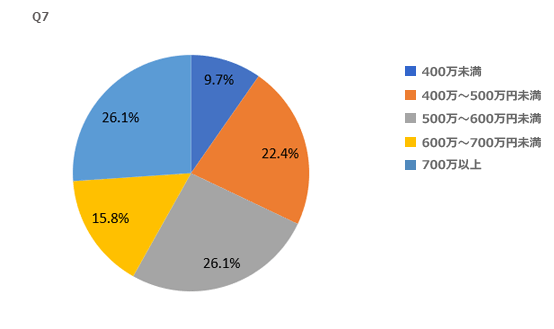 | n | 400万未満 | 400万~500万円未満 | 500万~600万円未満 | 600万~700万円未満 | 700万以上 | |