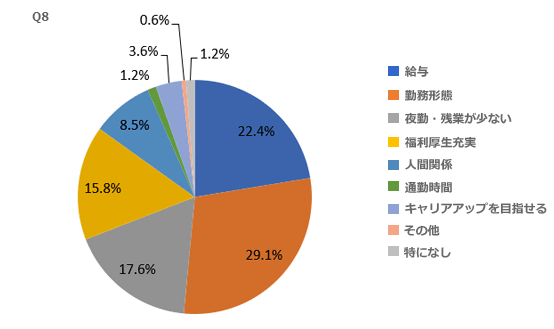 Q8 職場を選ぶ際に最も重視する点はどれですか?